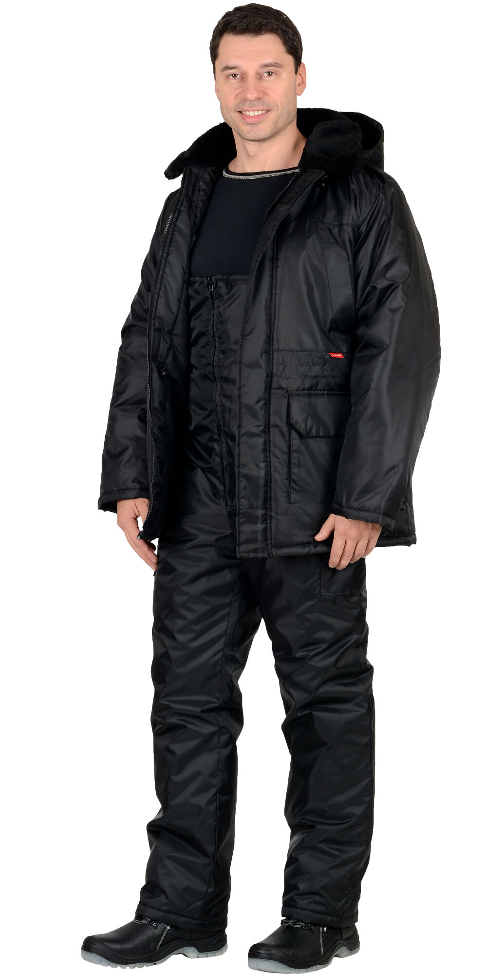 Костюм мужской утеплённый: куртка длинная, полукомбинезон.