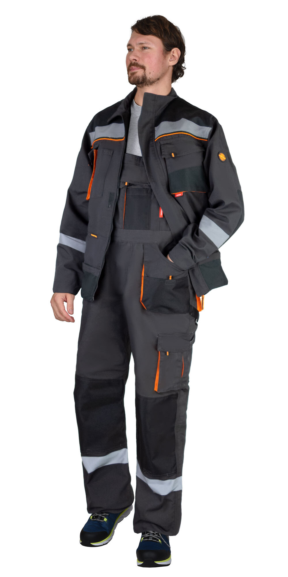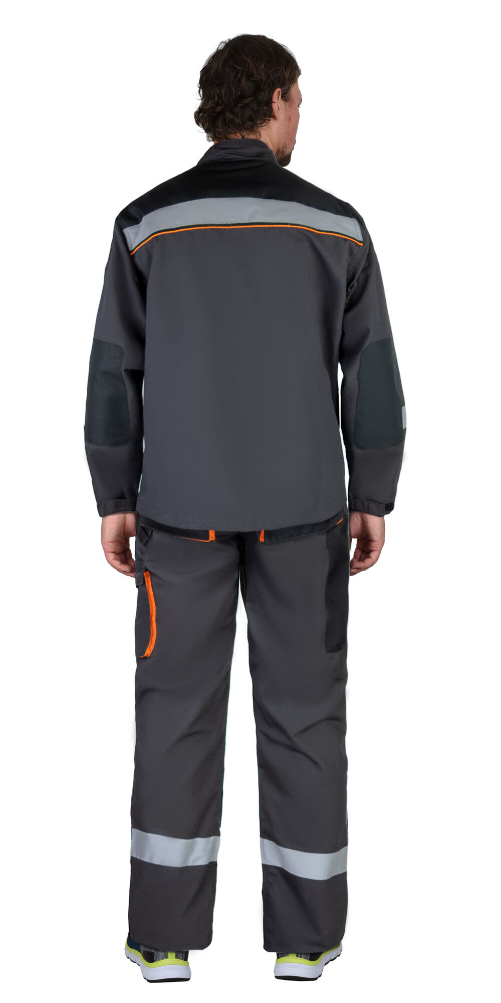 Костюм летний состоит из куртки и полукомбинезона, в костюме предусмотрена светоотражающая полоса для сигнальной видимости.