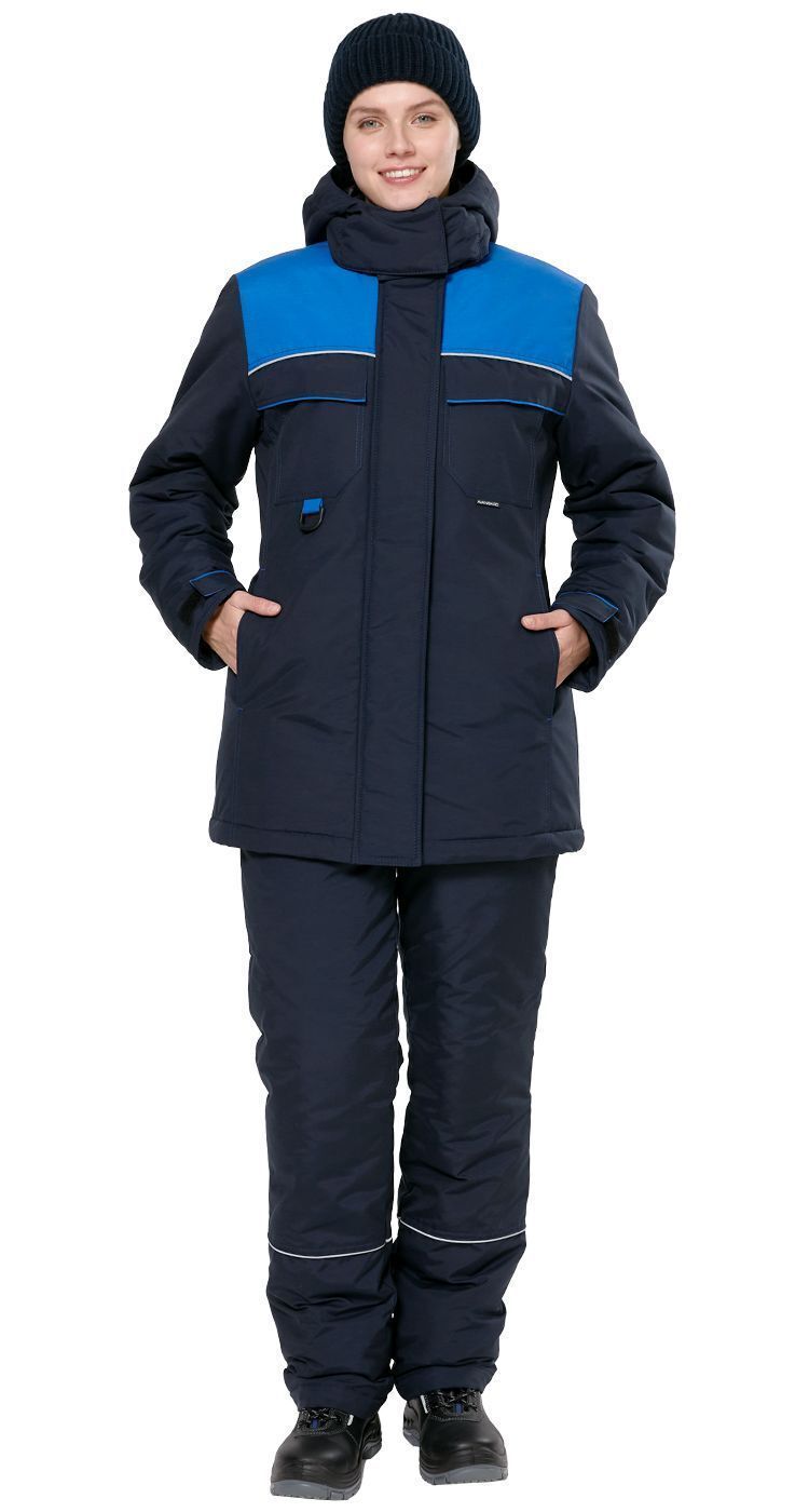 Костюм женский рабочий утепленный, состоит из куртки и полукомбинезона.