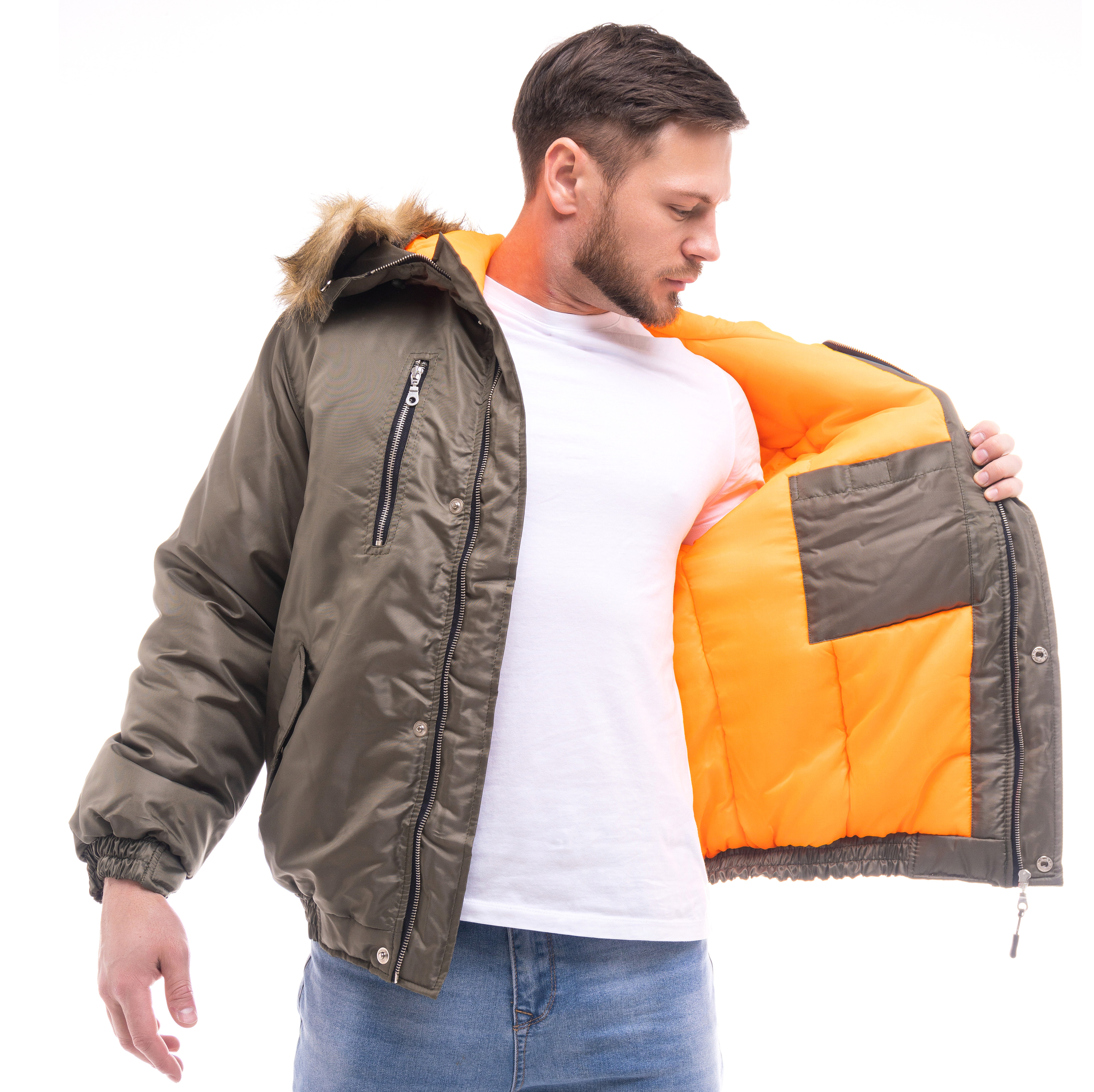 Куртка "Аляска" изготовлена в соответствии с ГОСТ. Модель имеет укороченный фасон на поясе, дополнена эластичной резинкой для комфортной посадки. Ветрозащитная планка на кнопках обеспечивает дополнительную защиту от ветра. Капюшон пришит к куртке и оснащен съемной меховой опушкой, что позволяет варьировать его использование в зависимости от погодных условий и предпочтений.